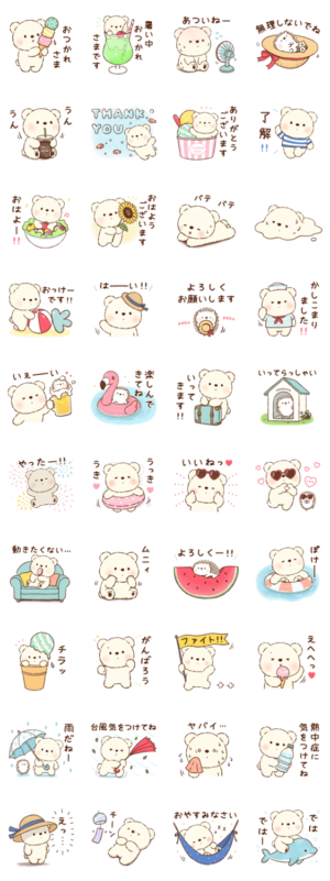 もこもこしろくまさん時々ハリネズミのスタンプです!暑い夏に♪naonao3 より発売