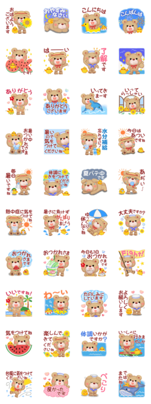 かわいいテディベアの夏の日常会話に使えるスタンプです。めぐみん より発売