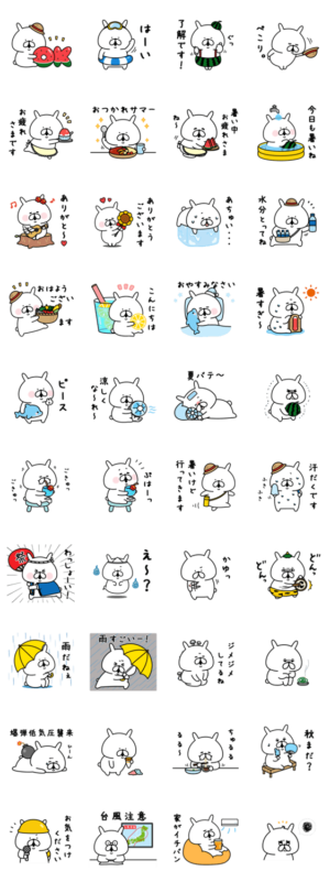夏スタンプ第6弾!家族や友達、彼氏彼女、先輩後輩、ママ友...色々な人とのトークに添えて暑い夏をゆるうさぎと乗り切ろう!chococo より発売