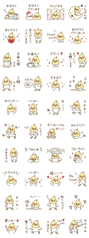 オカメインコ●´∀`●手書き風。毎日使えるスタンプ盛りだくさん。ルチノー遠藤まめこ より発売