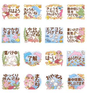 とびだす!夏に毎日使える!人魚と海のなかま スタンプ画像一覧