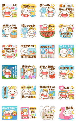 暑い夏に役立つ♡画面いっぱいに可愛く飛び出す棒人間のちびマロのポップアップスタンプです。挨拶や相手を気遣う言葉が揃ってます♪