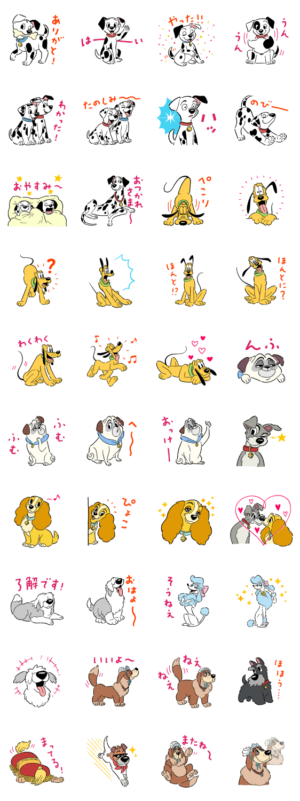 ディズニーの犬のキャラクターが集まったスタンプです。どれも可愛く使いやすいです。