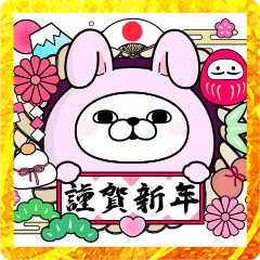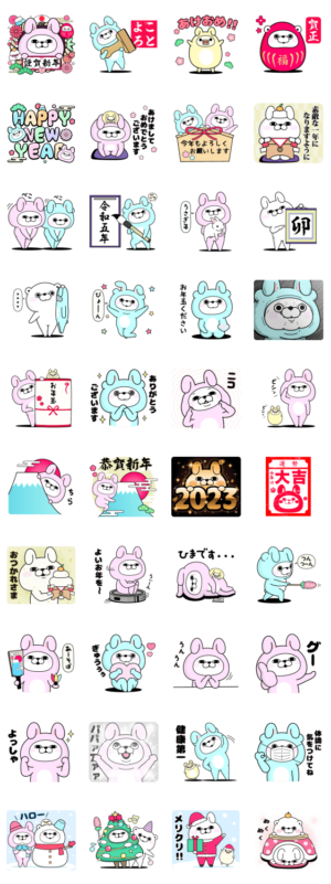 うさぎ&くま100%あけおめスタンプ スタンプ画像一覧