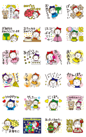 おめでたいことがあった際にピッタリなスタンプが多く揃っている印象です。