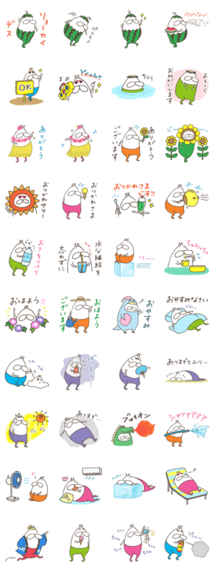 ねこタイツの夏をテーマにしたスタンプです。スイカやひまわり、氷など夏っぽいモチーフでトーク内も夏色に。ねこタイツと一緒に涼みながら暑い夏も乗り越えましょう。