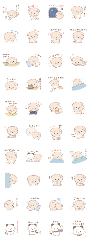 三日坊主で自分をついつい甘やかしちゃう、意志が弱いイヌ「いしよわちゃん」。口癖は「明日こそ」。「いしよわちゃん」の日常を詰め込んだスタンプです♪イマジニア(株)/サンエックス(株) より発売