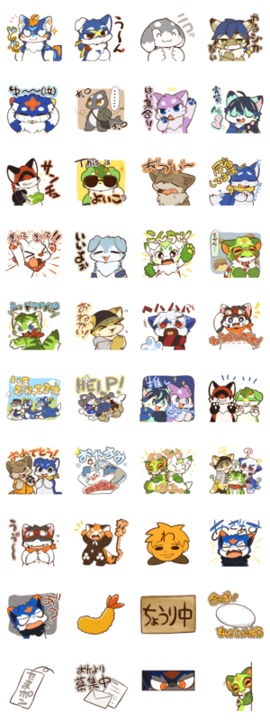 所属メンバーである「つゆまる」が描いた、YouTubeを中心に活動しているどうぶつ(ケモノ)きぐるみサークル『プロダクション体育館』のスタンプです。