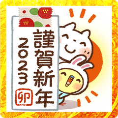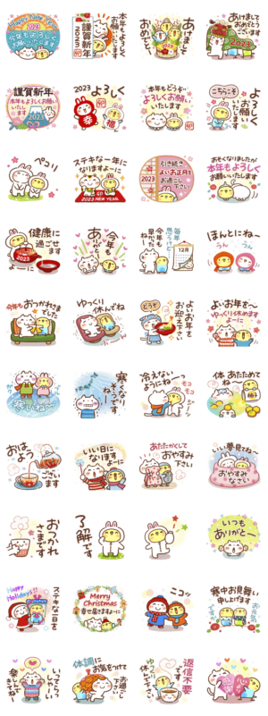 可愛らしくにぎやかで、新年のあいさつにたくさん送りたくなるスタンプだと思います。