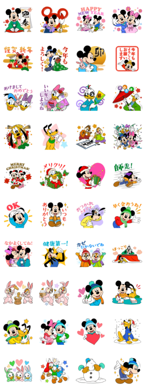 ミッキー&フレンズ あけおめスタンプのダウンロードはこちら↓