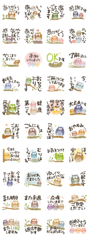 福を呼ぶ♡にっこり梟の前向き幸せ言葉 スタンプ画像一覧