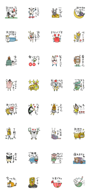 個性豊かな動物達と食べ物のスタンプです♪motto より発売