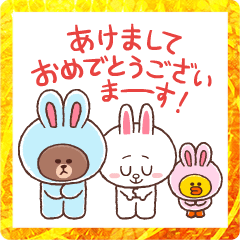 おなじみLINEキャラクターのお正月スタンプ。キャラクター詳しくないひとにも使える。