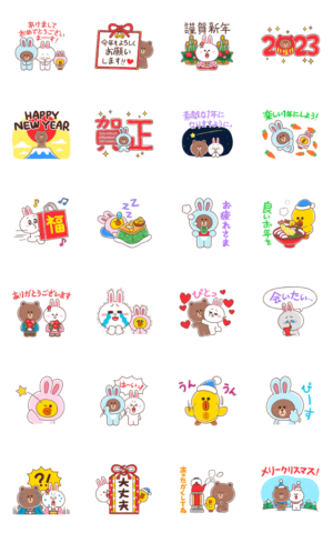LINE FRIENDSの2023年あけおめスタンプが登場!LINE FREINDSと一緒に楽しい新年を♪販売期間:2023/1/31 10:59まで ※1/3(火)23:59までの購入でLINE FRIENDSおみくじがもらえます