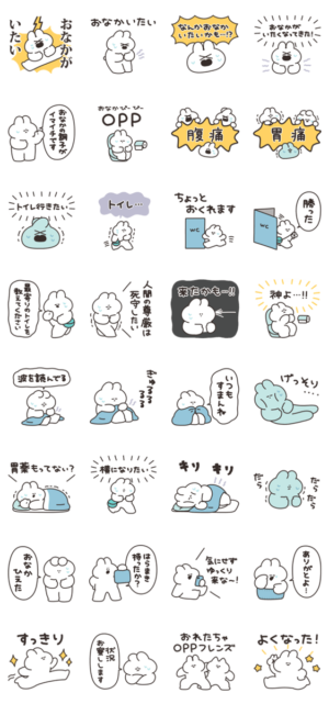 おなかがいたいうさぎのスタンプです。ナポリ より発売