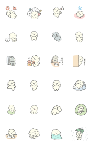 もさもさのいぬ「もっさりもさお」のうごくスタンプだよ!