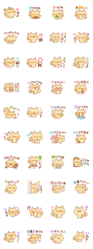 キュートな動物、しまりすの「マリーちゃん」のスタンプです!返事・あいさつ・気づかいなどがこれ一つでOKの万能スタンプ♪