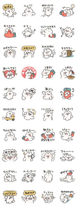 ゆるーくふざけるうさぎのぽてのスタンプです。タヌキ シオリ より発売