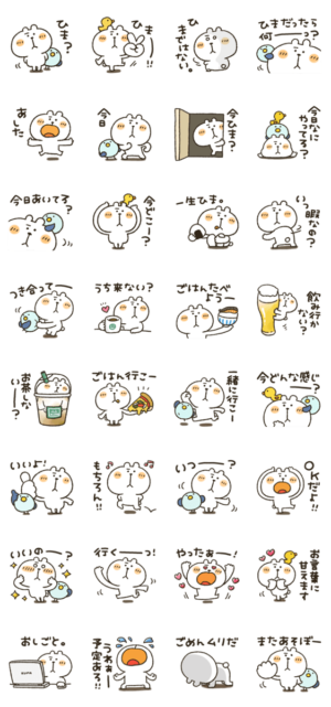 くまぴのスタンプお誘いバージョンです。今日ひま?今日何してる?今どこ?ご飯たべよう!かなぴ より発売