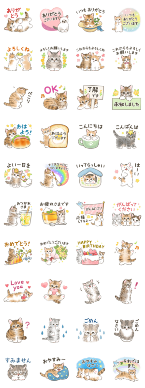 ふんわりかわいい猫たちの毎日使えるスタンプです♪(敬語/挨拶/日常/水彩/ねこ)erimari より発売