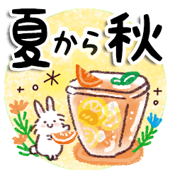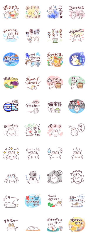 どなたにも使いやすい♪ふわふわ白うさぎの夏から秋へむかうスタンプセットです。~仕事・友達・あいさつ・夏・家族・秋・お盆・休み~ようこ より発売