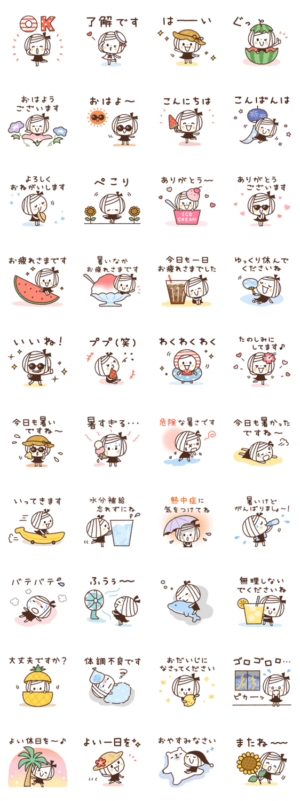 夏の日常に毎日使いやすい、ゆるボブGIRLの夏スタンプ第2弾です♪敬語が多めです*。 ..真夏/猛暑/おとな/かわいい/気遣い/ボブヘア/女の子