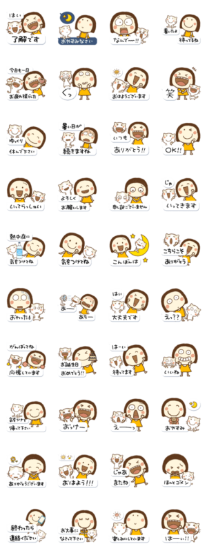 表情豊かでおもしろいコンビ、るんちゃんとにゃ吉が一緒になった可愛い吹き出しです。使いやすい日常会話やあいさつ、リアクション。takopon より発売