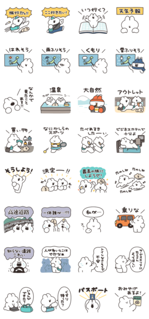 旅行に行くうさぎのスタンプです。ナポリ より発売