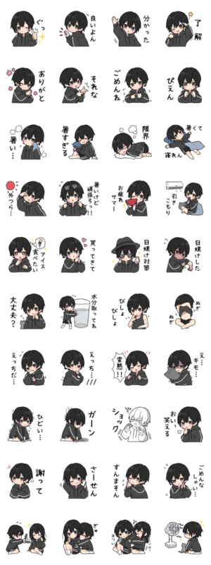 夏多め!!友達、家族、カップル、大切な人と使えるスタンプです!黒パーカーくんの第11弾紫月るな より発売