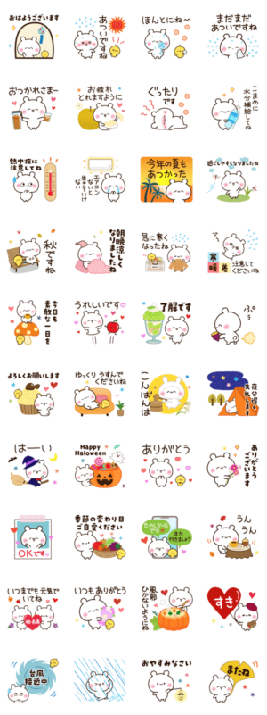 真夏から秋にかけて使えるスタンプです。季節の変わり目の挨拶や、 敬老の日、十五夜、ハロウィーンなどにも。レムリン より発売