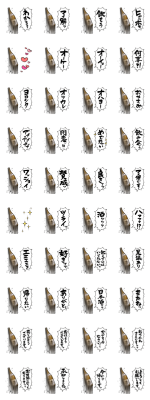 テンションの高い日本酒のスタンプです。酒クズや飲み会幹事さん体育会系の方とかにどうぞ。シンプルな日常あいさつや敬語もあるので友達家族上司仕事先輩なんでもどうぞ。オカヤマ より発売