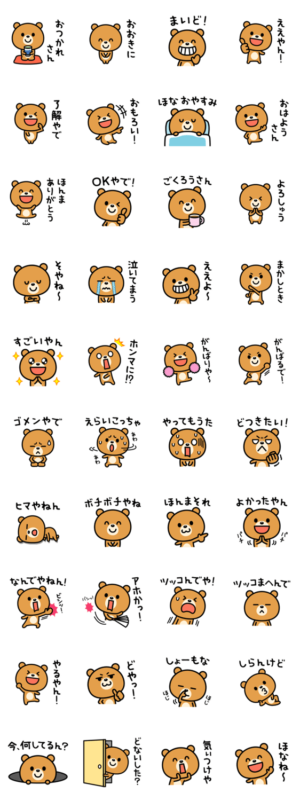 関西弁をしゃべるくま。楽しく使えて、いろいろな場面で使いやすいスタンプです。おーじろう より発売
