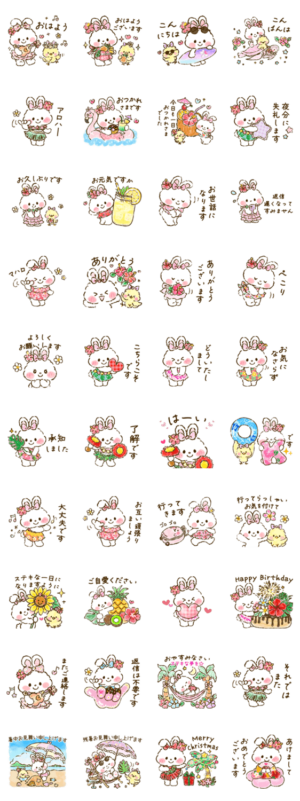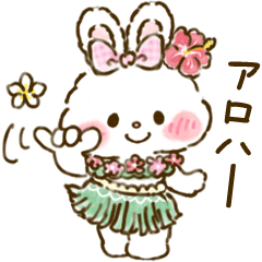 ハワイアンなリボンギャルズ(うさぎりぼん)の毎日使える敬語&挨拶スタンプです。ハワイ/フラダンス/フラガール/夏/暑中お見舞い/残暑お見舞い/クリスマス/お正月/兎