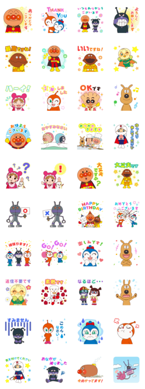 いろんな表情のアンパンマンとなかまたちがかわいい♪丁寧なことばで、誰にでも毎日使いやすいスタンプです。