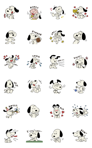 ちょっぴりレトロなスヌーピーが可愛いスタンプです。いろいろな表情が見れるので楽しいです。