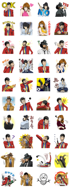 お待たせしました!LINEスタンプにルパ~ン三世颯爽登場!次元、五エ門、不二子、銭形5人の感情豊かなスタンプで会話を楽しく盛り上げようぜぇ!トムス・エンタテインメント より発売