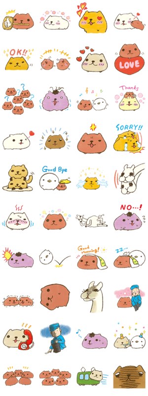 のんびりマイペースなカピバラさんのスタンプ第3弾は、まったり~んなクレヨンタッチ♪さらに表情豊かになって登場です。