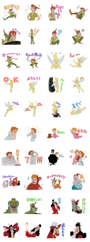 クラシックなテイストがかわいい「ピーター・パン」のスタンプです♪映画のワンシーンを再現したスタンプでトークを盛り上げよう!