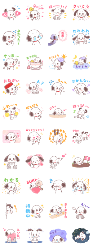 瞳がうるうる、キュートなスヌーピーのスタンプが登場!ちょっぴり甘えたスヌーピーがかわいく気持ちを伝えるよ。