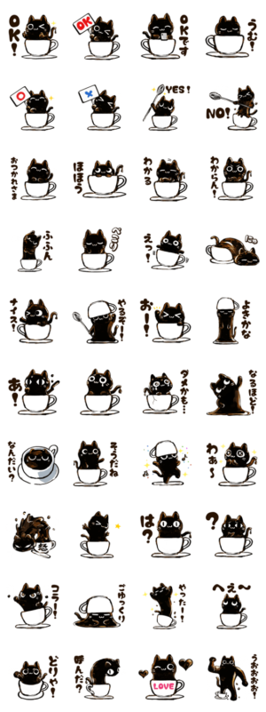 普段使いができる、猫のようなコーヒーのようなキャラクターの反応を送りやすいスタンプです。ケースワベ より発売
