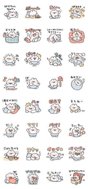 赤ちゃんになったうさぎのぽてのスタンプです。おむつがかわいくてお気に入りです!