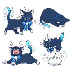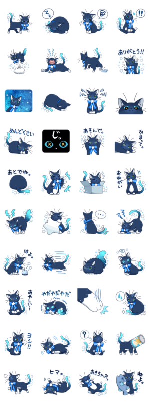 夜空を歩く「宙(そら)ネコのメラ」のきらきらかわいいスタンプ。翔太郎 より発売
