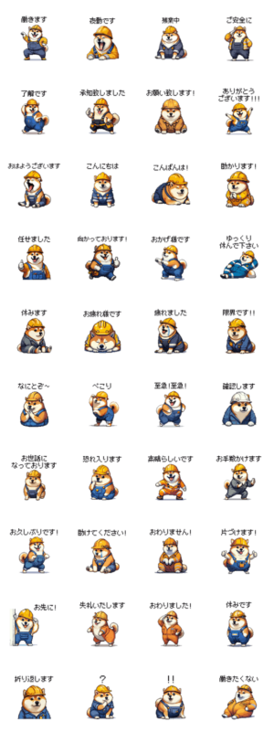 働く現場ふとっちょ柴犬 スタンプ画像一覧