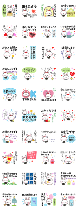 大人女子なリボンうさちゃん。気持ちがたくさん伝わる長文メッセージです。敬語多めで誰にでも送れるスタンプです。レムリン より発売
