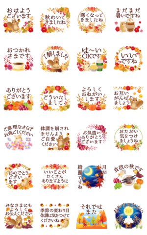 紅葉が舞う!秋を感じる大人可愛いリスたち スタンプ情報