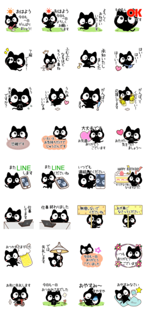 黒猫の『クロネコすたんぷ』の丁寧な敬語スタンプ。かわいいくろねこが好きな方にぜひ。毎日便利に使えるあいさつや言葉を集めました。【かたこ】可愛い・楽しい・挨拶