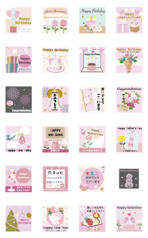 【大人キュート】誕生日•季節のお祝い スタンプ画像一覧