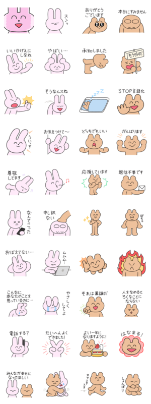 いつもニコニコのうさぎとくまの日常で使いやすいスタンプです。毎日使ってね。わかる より発売