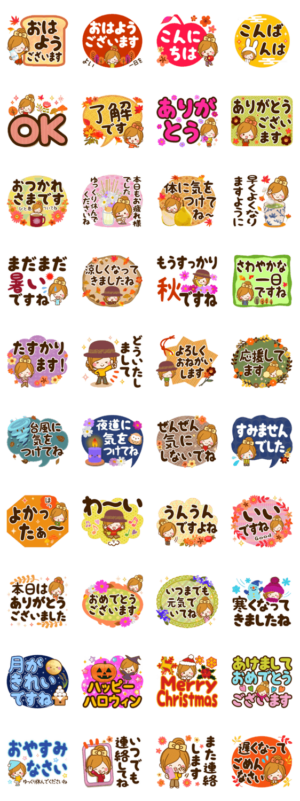 敬語多めで文字が大きく見やすい♪便利な秋冬デカ文字スタンプです♡ず〜っと使えるデザインです♪/ハロウィン/誕生日/お正月/クリスマス/敬老の日/紅葉/十五夜/挨拶/月見