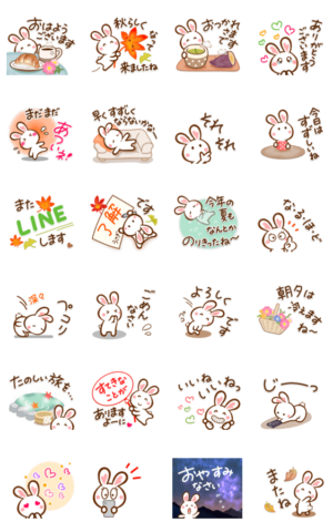 ほんのり秋色❣ハート耳のうさぎさん スタンプ画像一覧
